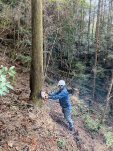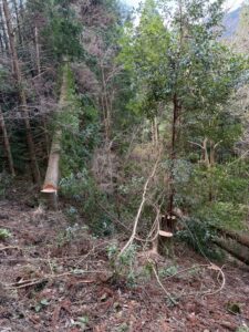 このような感じで伐採していく工事となります!現場では事故や怪我などが無いように安全面にはしっかりと気をつけて作業させて頂いてます!